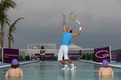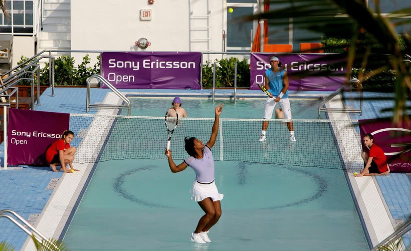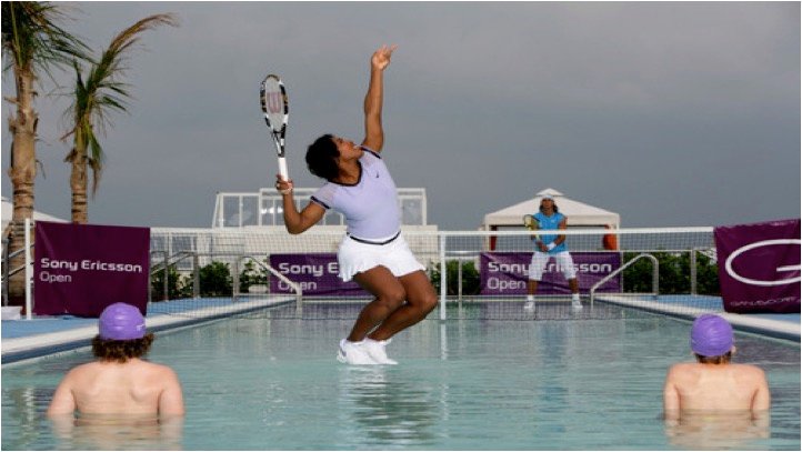 World first stunt for SonyEricsson to help promote their sponsorship of the WTA. Take one miami rooftop pool add two of the greatest players in the world, the result, the first ever game of tennis on water