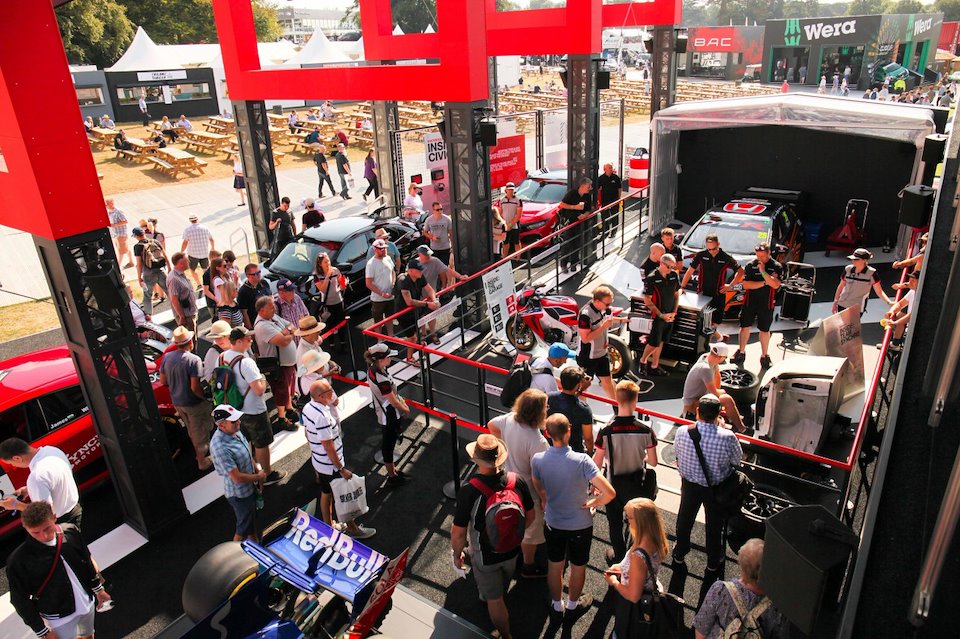 Surrounding the performance space were a number of motorsport themed activations within ‘pit garages’ that brought to life Honda’s credentials across two and four wheels. For example, the experience in the first pit garage deconstructed a lap – showing there is more to racing than ‘pedal to the floor’ with a unique view of what it takes to pilot a Honda bike around one of Britain’s most demanding circuits. After witnessing the hot laps, visitors had a chance in the next pit garage to get their knee down like Marc Marquez, one of the most successful motorcycle racers of all time, and to make a great social souvenir. On the grandstand was a special guest: the NSX GT3, which made its British debut. These activations inspired and enabled people to get under the skin of motorsport and experience Honda’s road to race philosophy lives throughout its products; as embodied by the new Honda Civic.